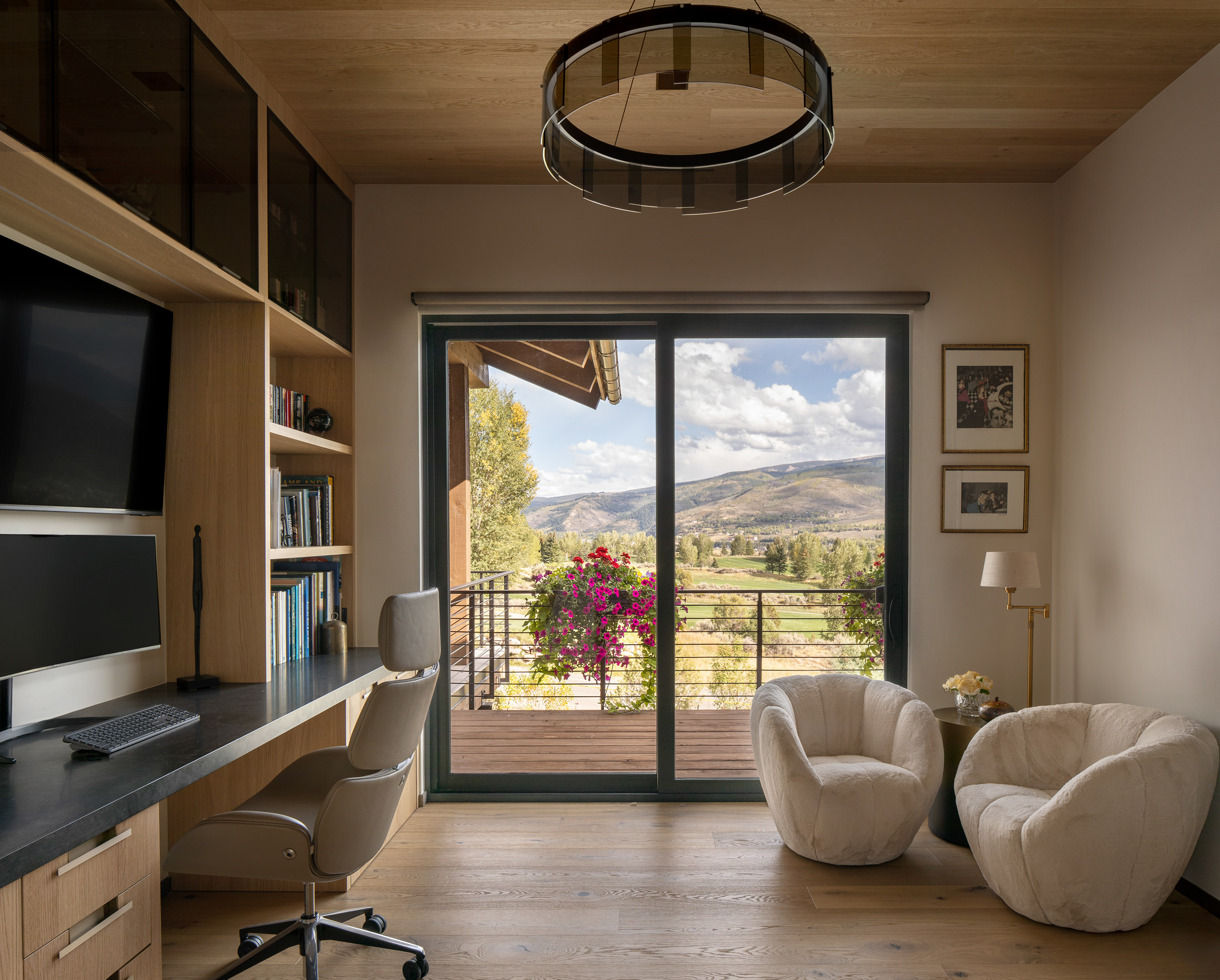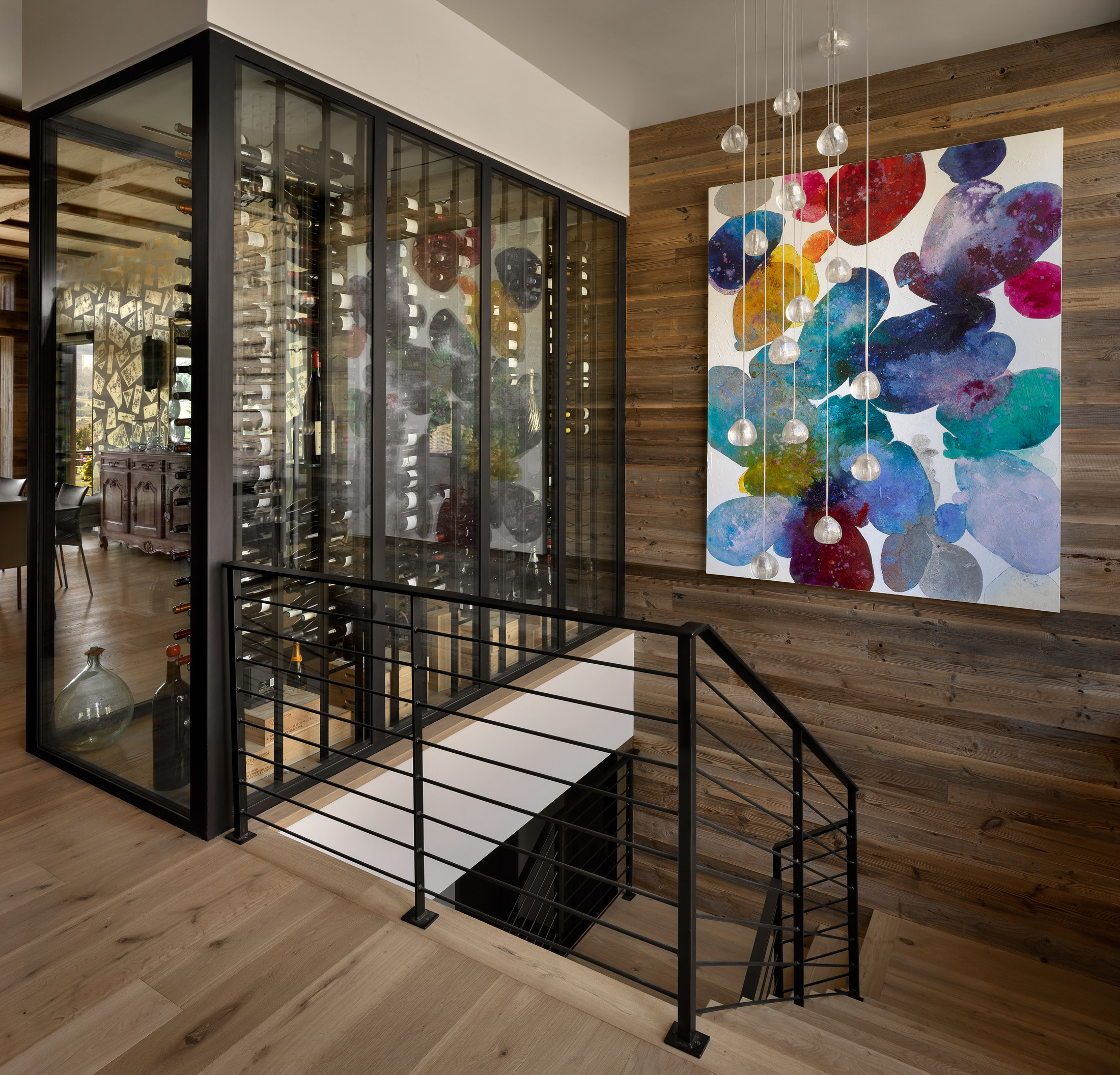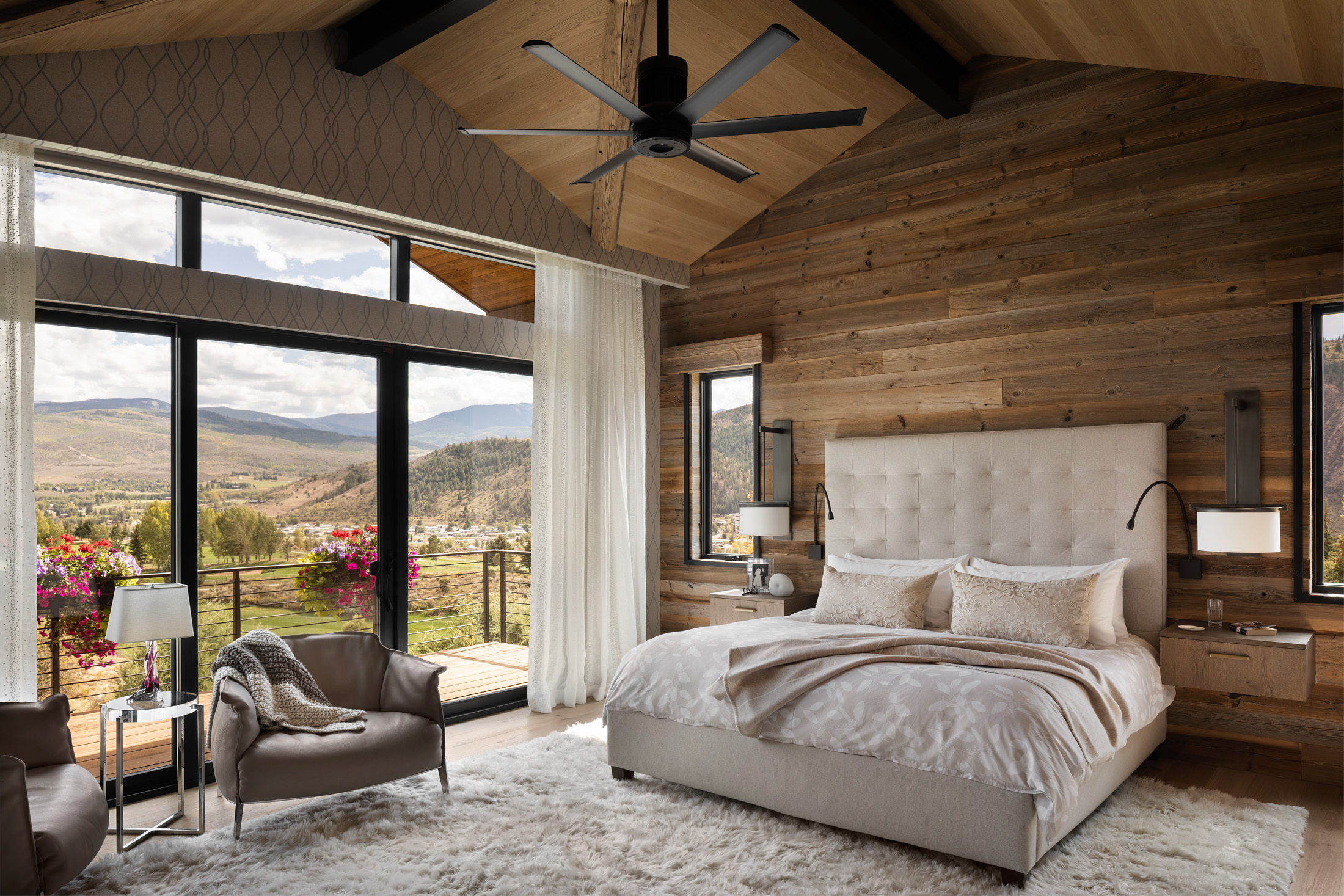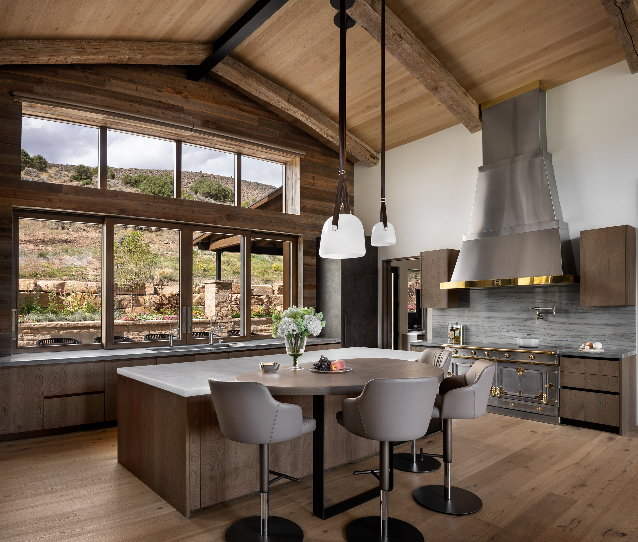 Nestled on a south-facing slope in the valley of Vail, CO, this unique residence includes sweeping views of the New York mountain range with a glimpse of nearby ski resorts. Inspired by the heritage of France and mountain chalets found high in the French Alps, the home presents vernacular characteristics of sweeping slope roofs, large overhangs, and expansive timber structures. Hints of modernity are reflected throughout the project’s details, with structural support elements coupled with rustic wood siding and integrated stone cladding. The residence exudes the nature of modern elegance, and speaks to the beauty of mountain architecture. Élégance montagnarde rustique et moderne!